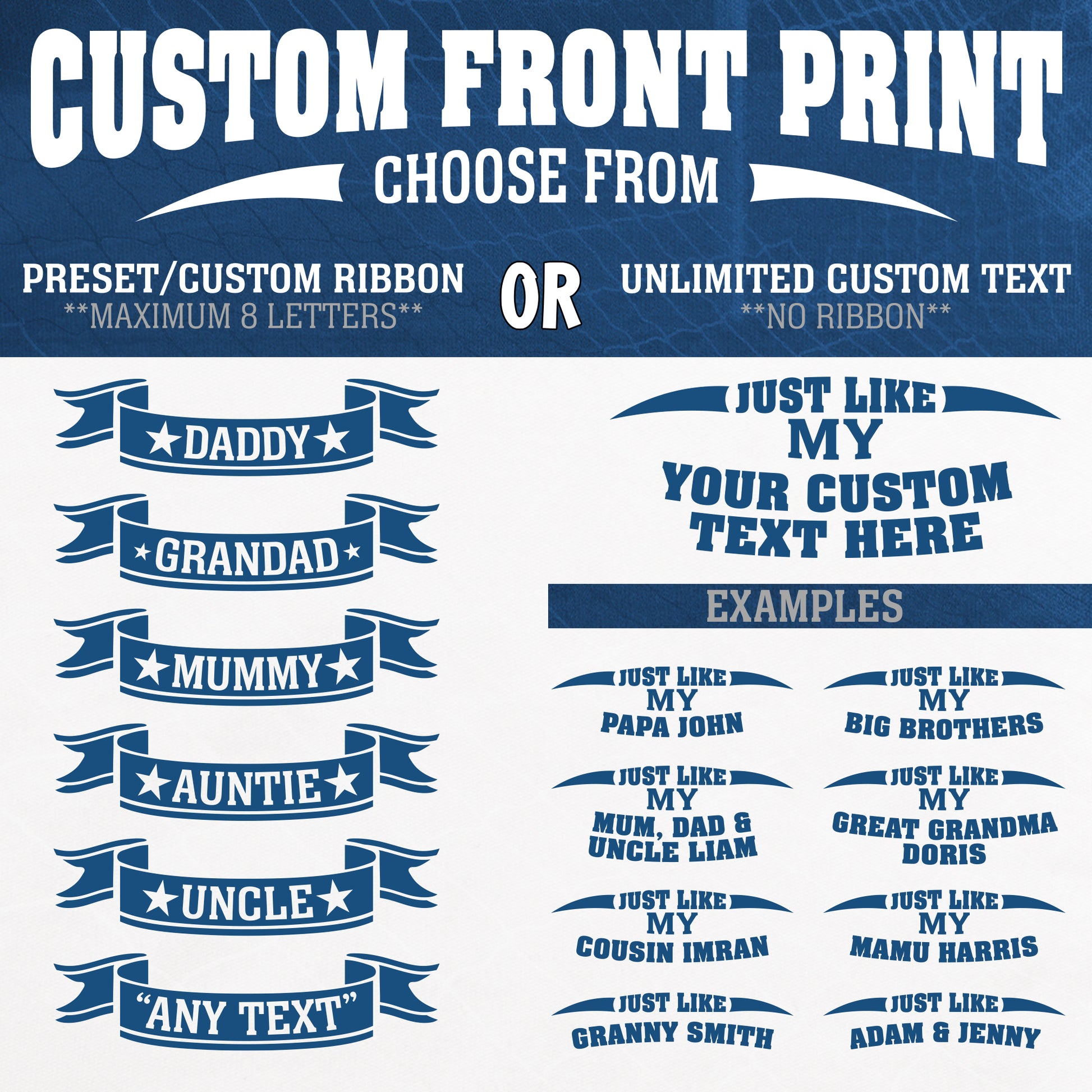 Front can say Daddy, Mummy, Grandad – or your own message